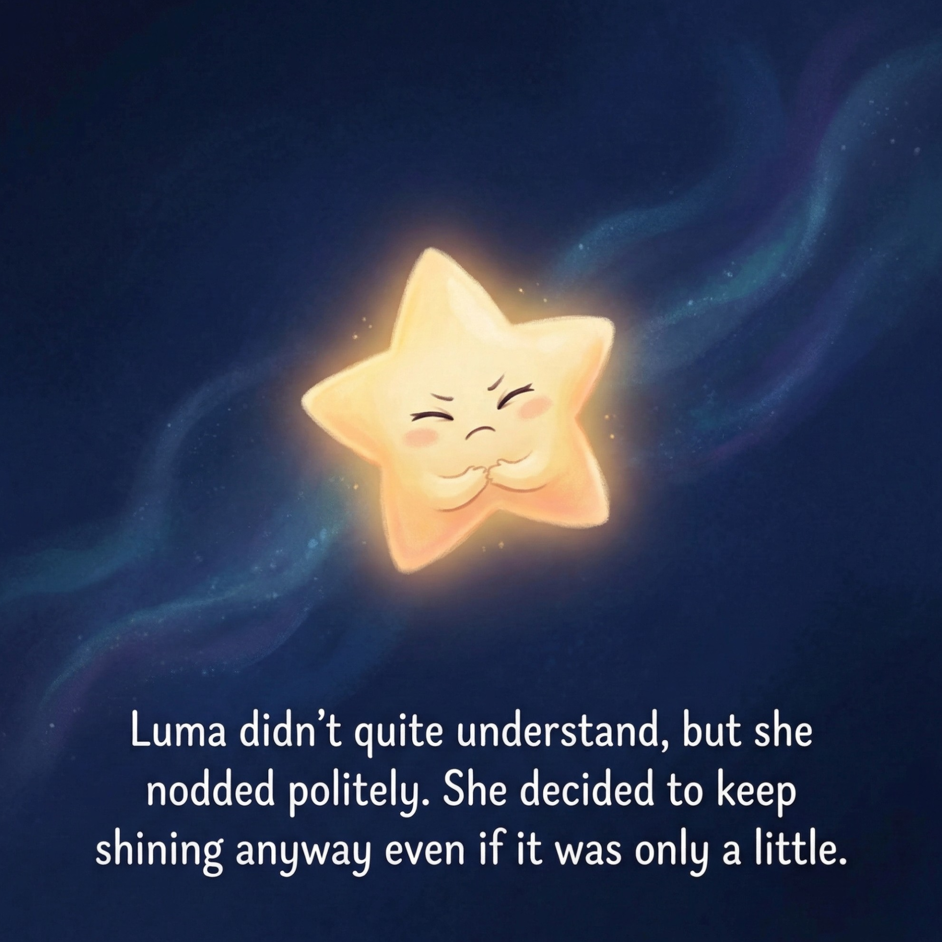 High above the clouds lives Luma, a little star who dreams of shining as brightly as the others. No matter how hard she tries, her glow remains soft and gentle, making her feel invisible and sad. One night, with the kind guidance of the Moon, Luma learns an important truth—you don’t need to be the brightest to be special.