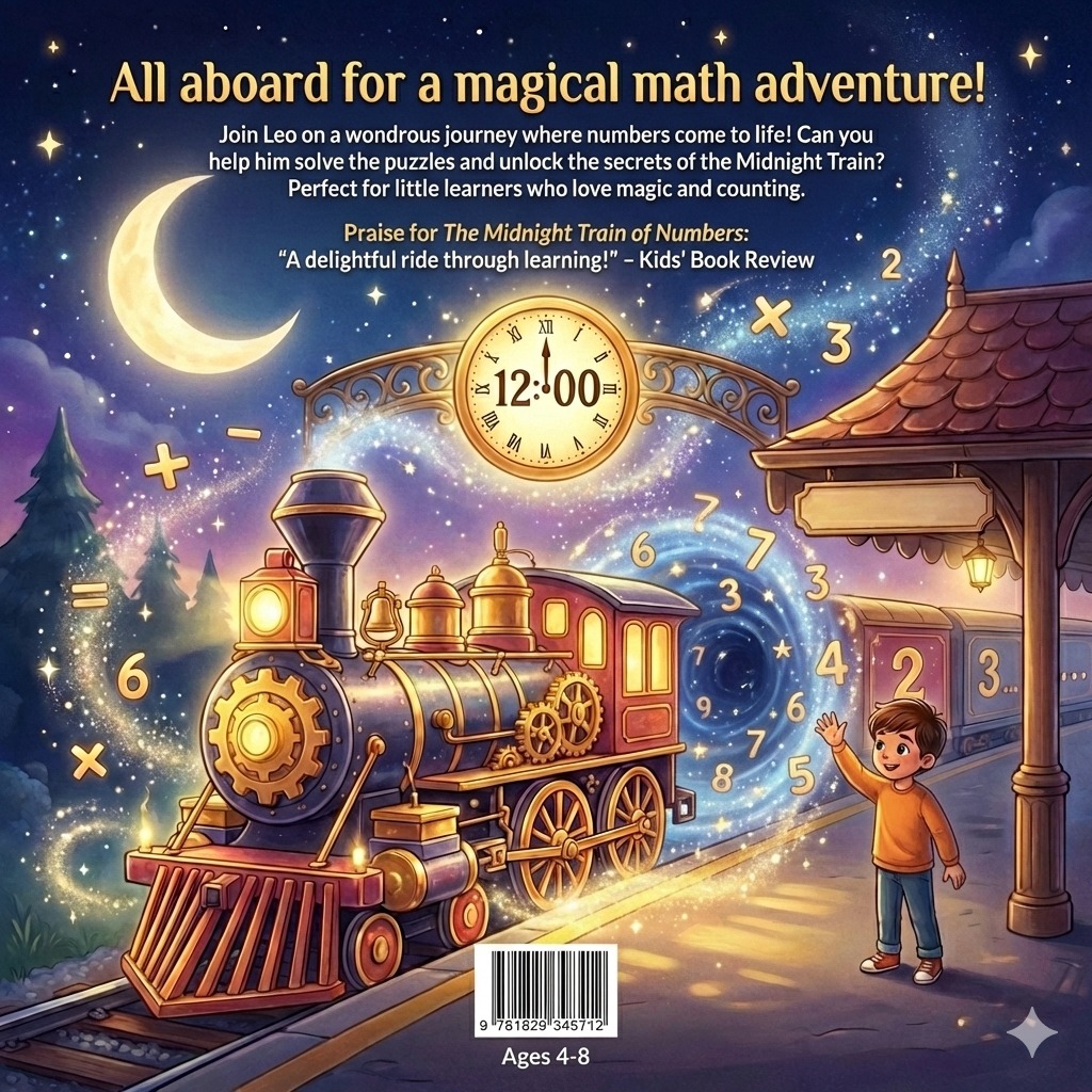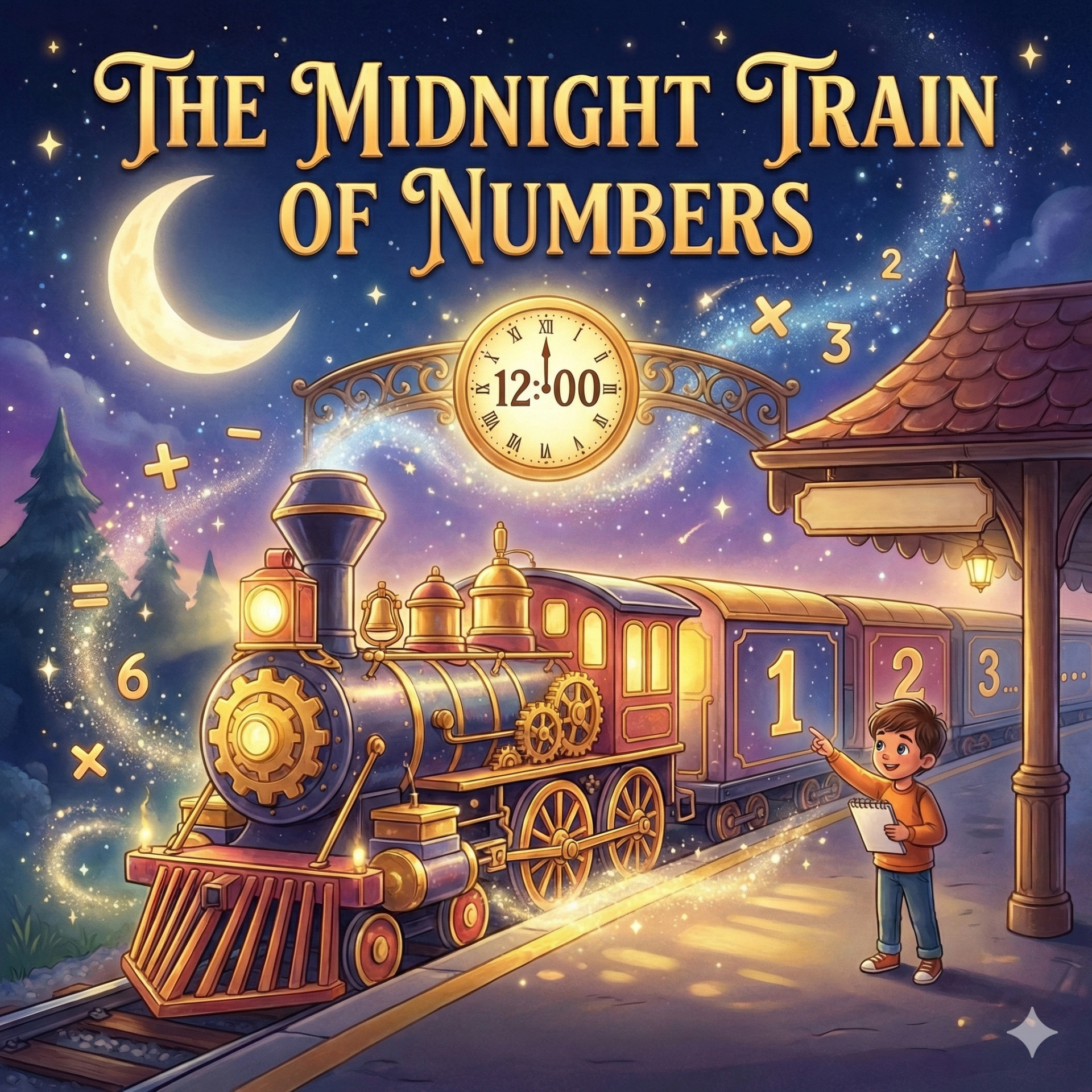 The Midnight Train of Numbers is an engaging bedtime math story for kids that blends storytelling with early learning concepts in a magical way.