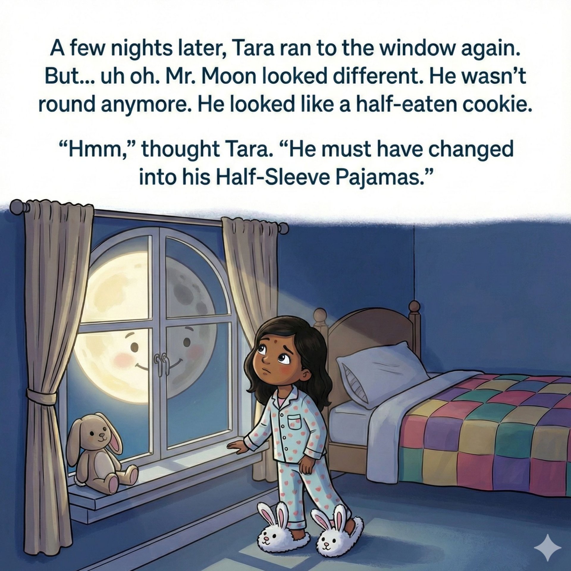 The Moon’s Magic Pajamas Description: Does the Moon have a wardrobe? Little Tara thinks so! Every night, she watches the Moon change from a bright white "Party Suit" to "Skinny Banana Socks" and even a "Ninja Cloak." Join Tara and her Dad in this adorable bedtime story as they play a game of "Sun Tag" to discover the real scientific reason why the Moon changes its shape. A perfect read for curious little stargazers!