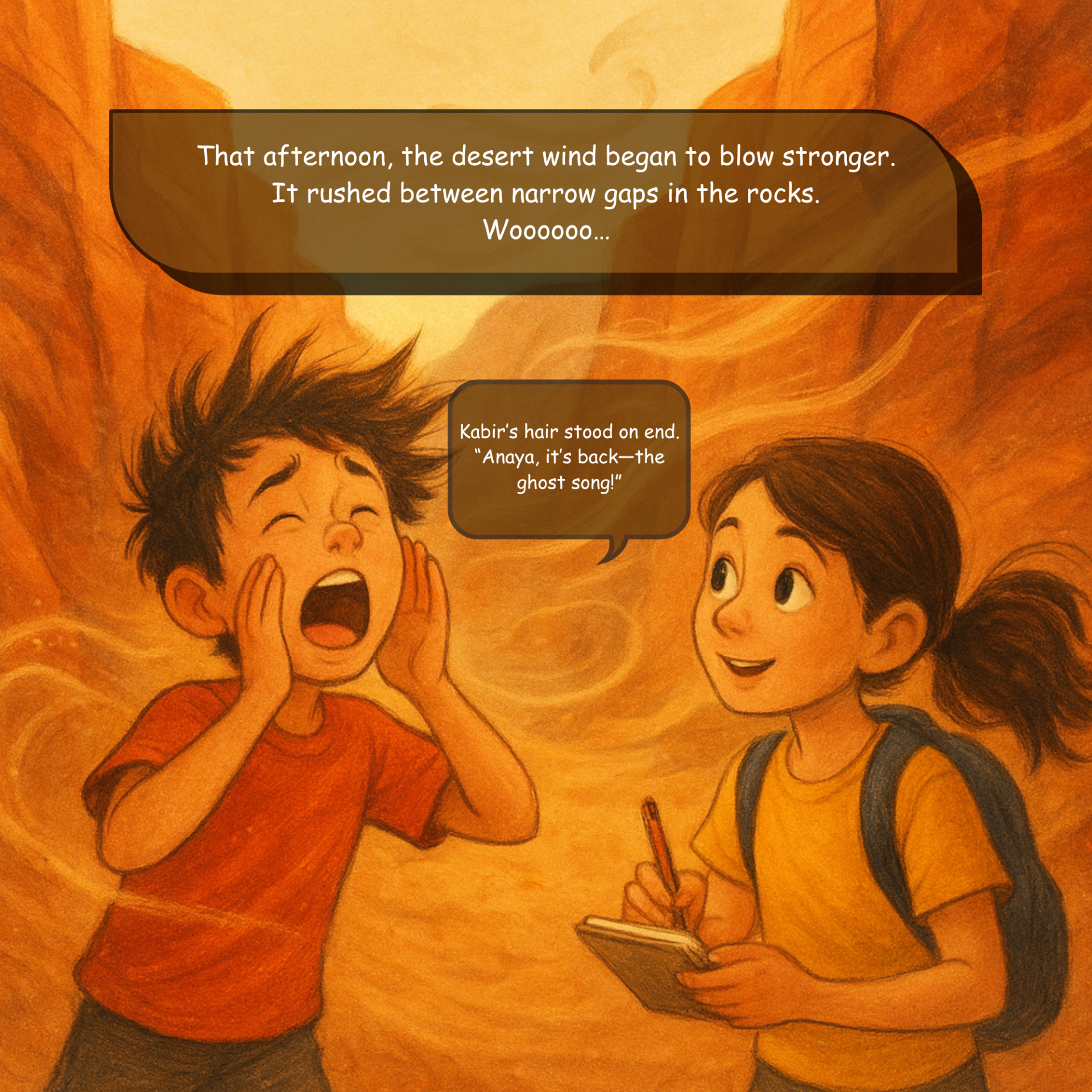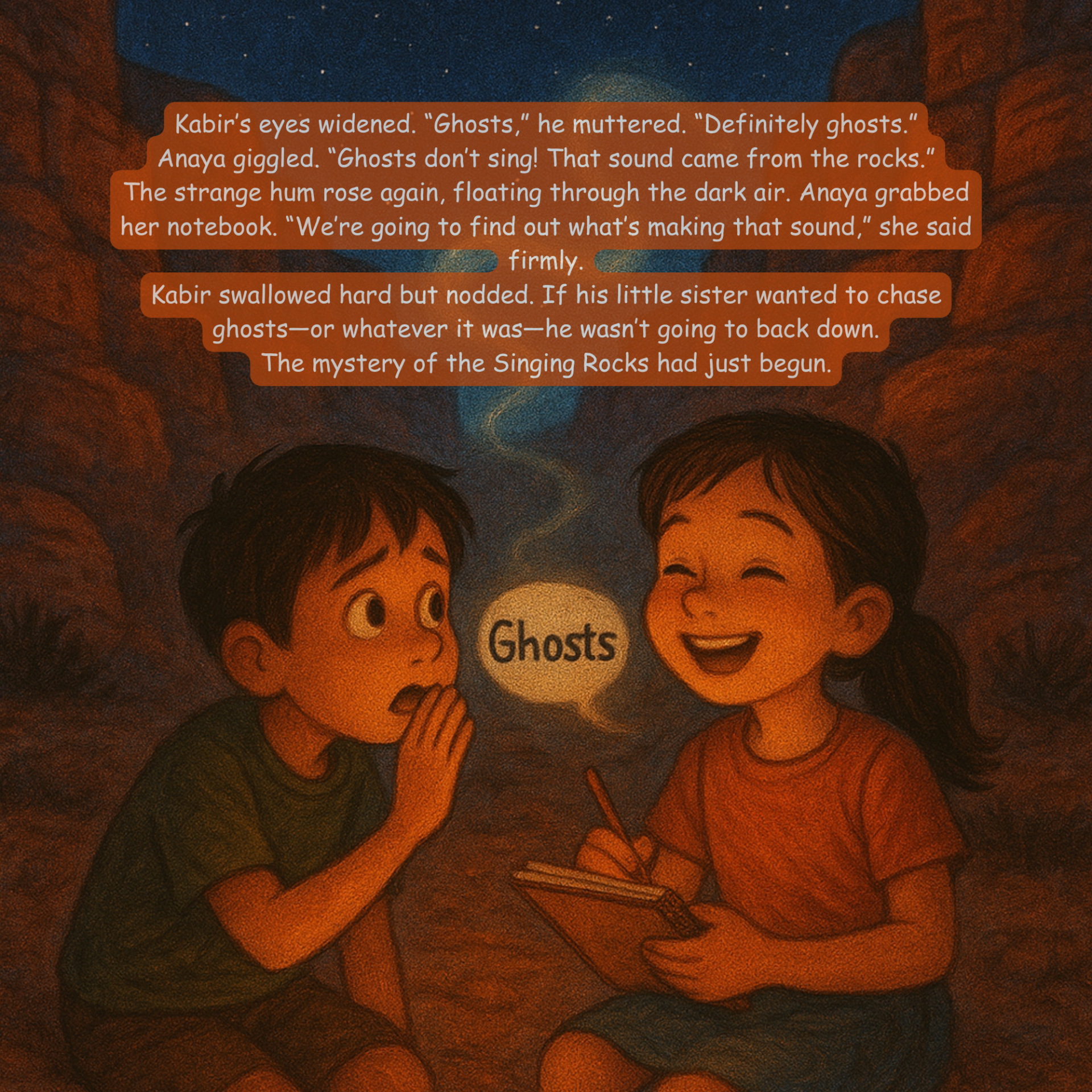 When Anaya and her brother Kabir set off on a family camping trip to Echo Canyon, they expect stargazing, campfires, and fun. But the desert has a surprise waiting for them—a mysterious humming sound that drifts through the night air. Is it magic? Is it ghosts? Or is there a scientific secret hidden within the canyon walls?