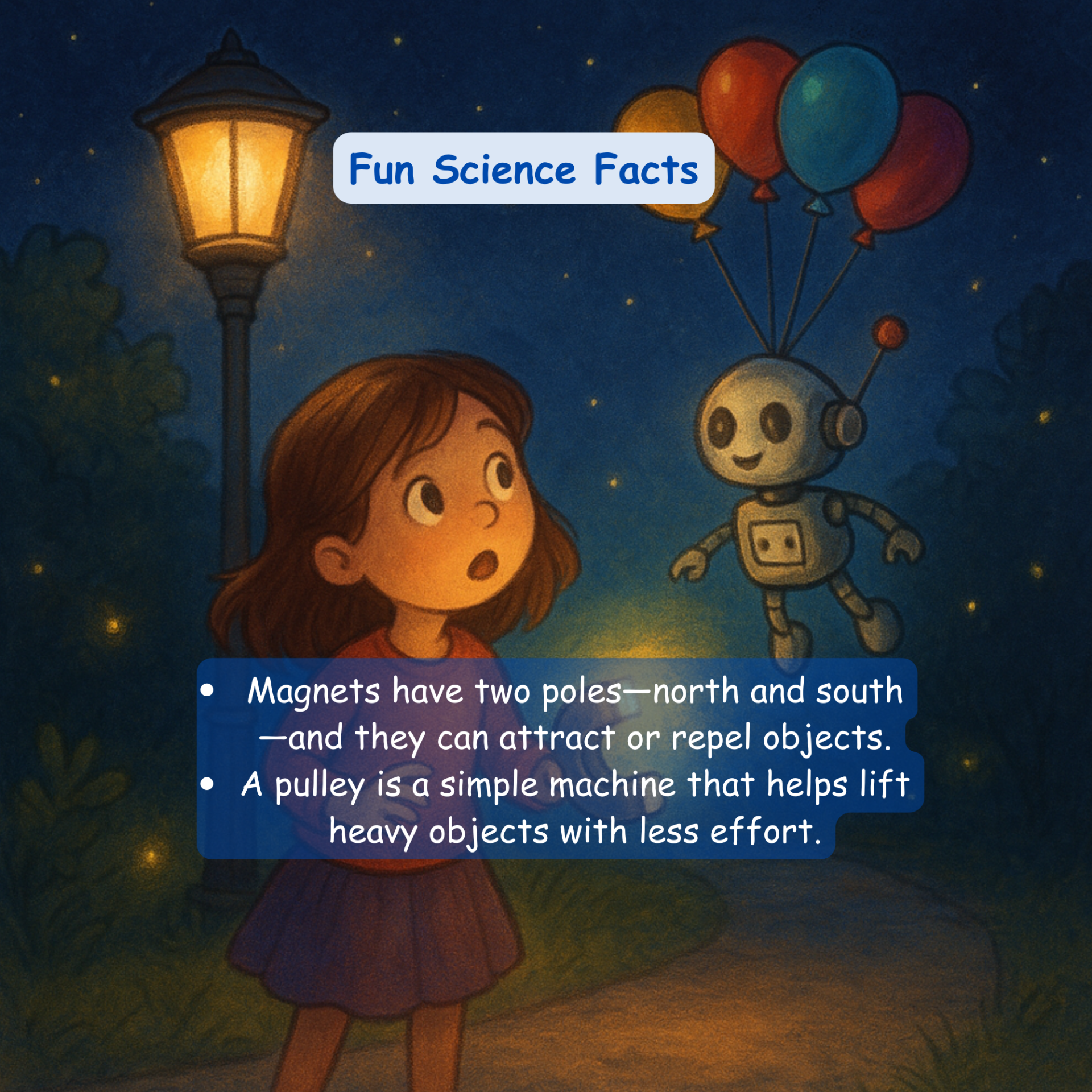 At the end of the story, children can explore two fun science facts about magnets and pulleys to keep their curiosity sparking long after the story ends.